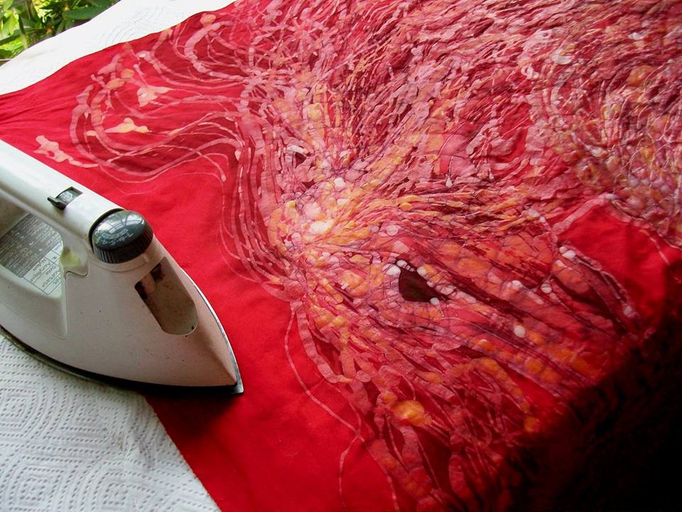 I happily ironed out my batik on my sheltered porch in the brilliant sun. I feel grateful for the season, this day and, as always, for the inspiration surrounding me for my batik.