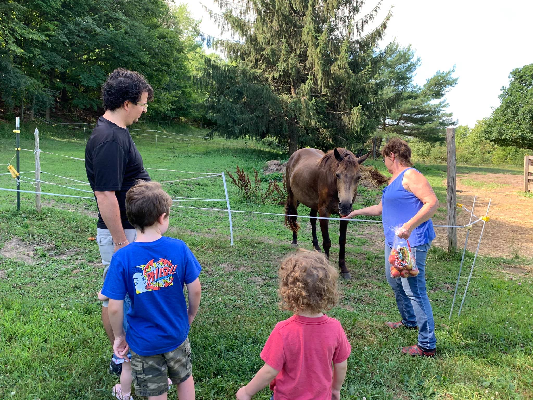 Vanilla is still miffed at me for having someone else feed him while I was in recovery. He has been very grouchy, but on this visit, he took an apple from Henry, which is a big accomplishment.