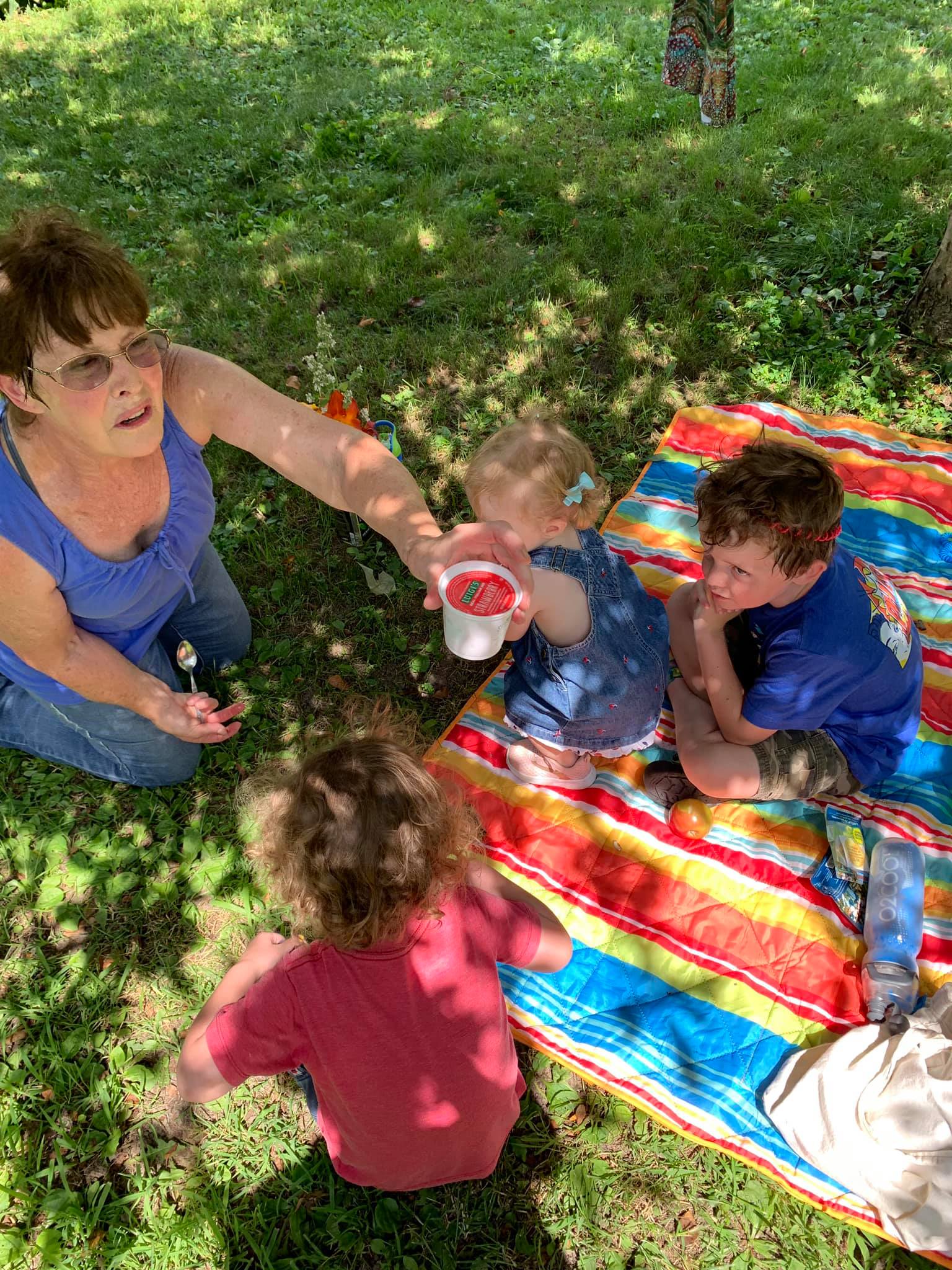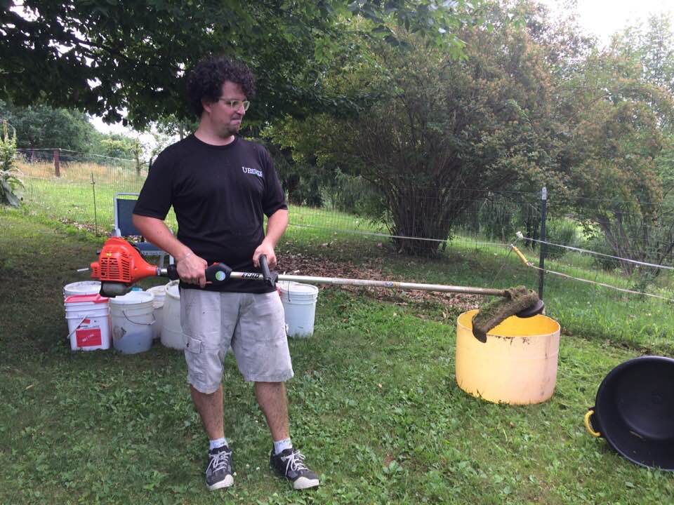 Then this past weekend (call it Blueberry weekend) my friend and web designer Kate Austin-Avon and her family made their annual visit yesterday. They come when the berries are ripe. Cory got my dye bucket area ready by weed whacking and then helped get my dye buckets out of the cellar for me.