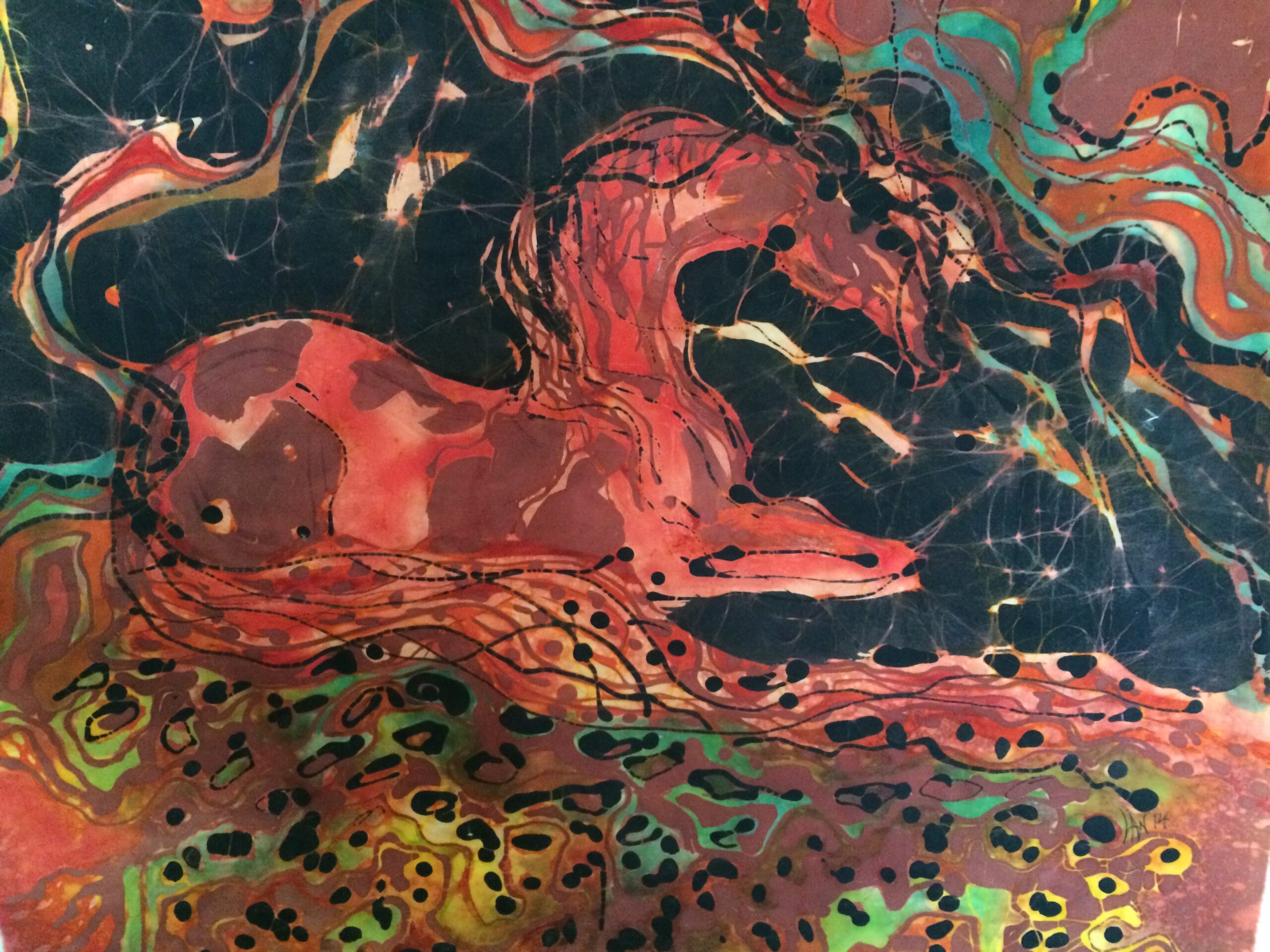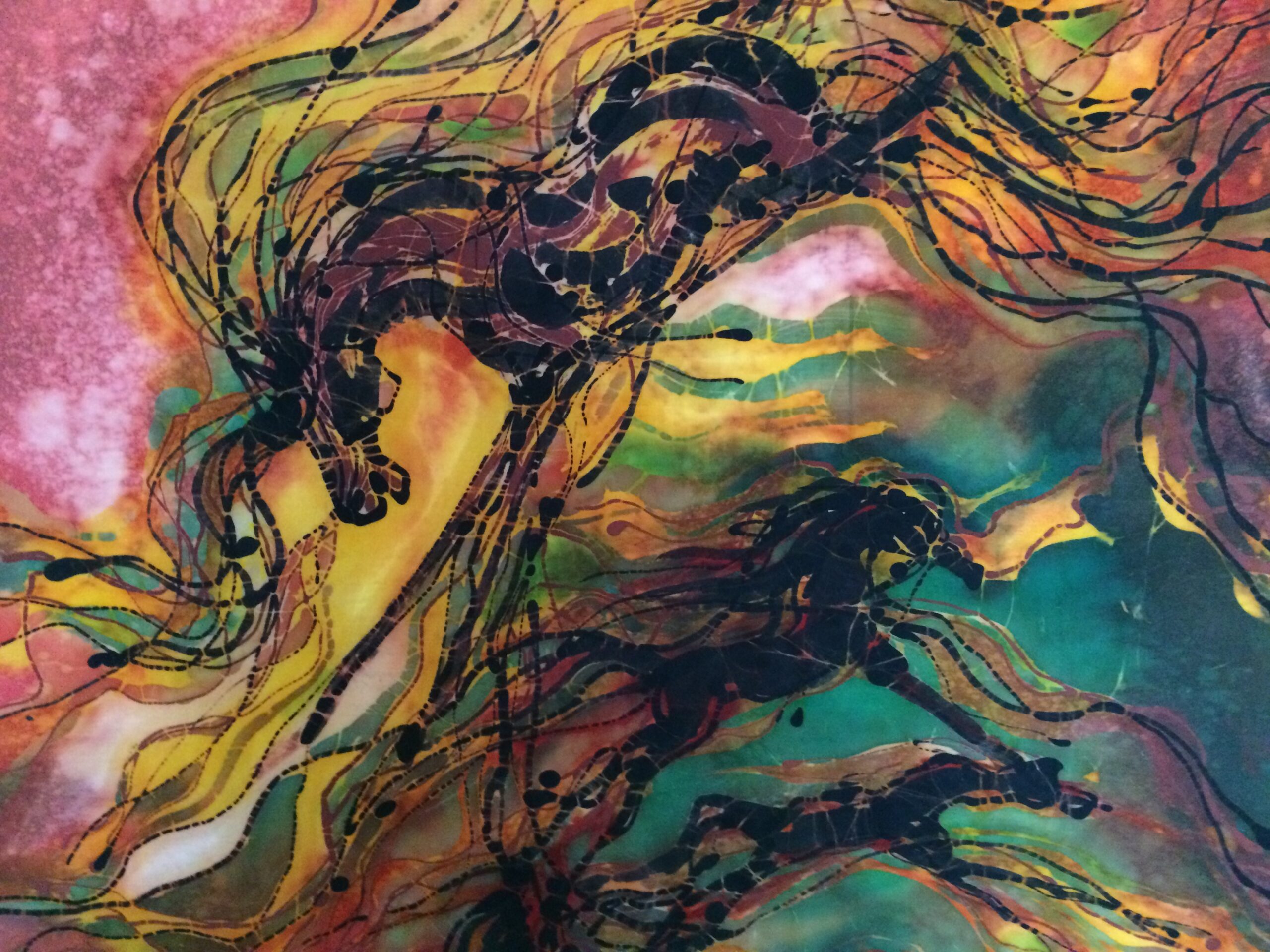 This batik will be shown at the Bedlam Farm Open House on the weekend of October 10 and 11, as will more of my artwork. There will be lots of artists, poets, writers, musicians, and demonstrations at the farm that weekend, and I hope that you may be able to come and share in all of the excitement.