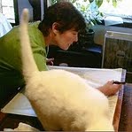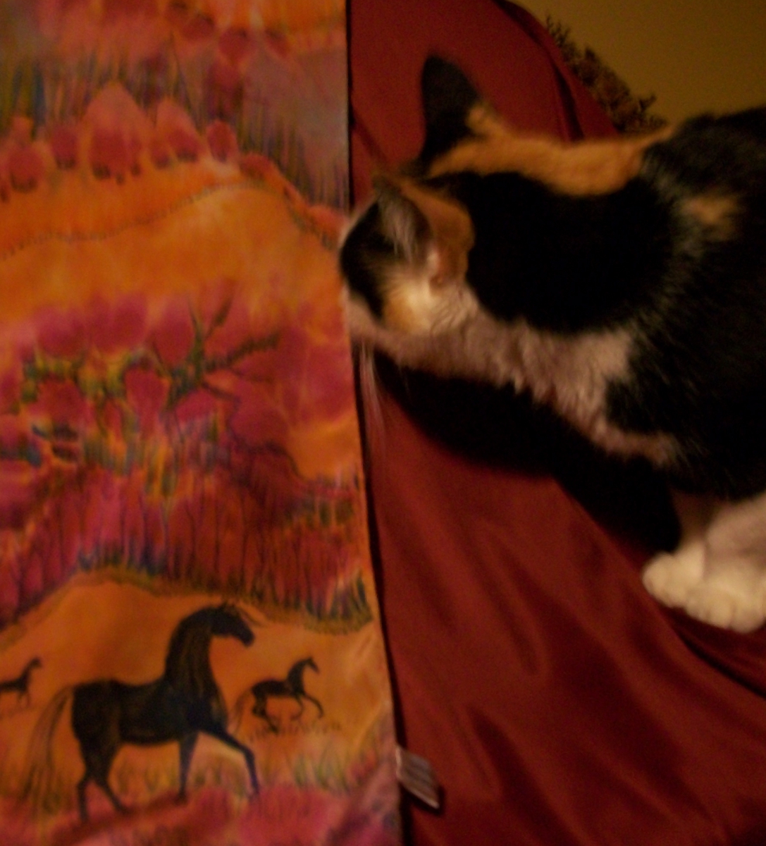 Back home I work on more batik and finish new scarves, purses , and the multitude of details required before any Art and Craft event. My batik helper, Singer, watches and then carefully inspects my work.
