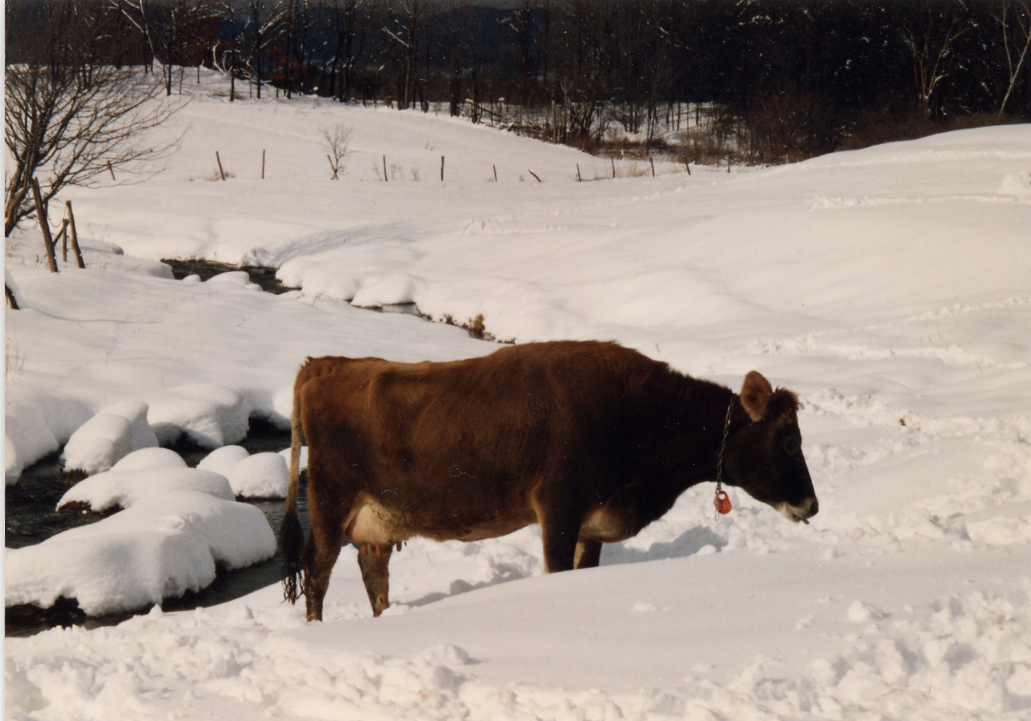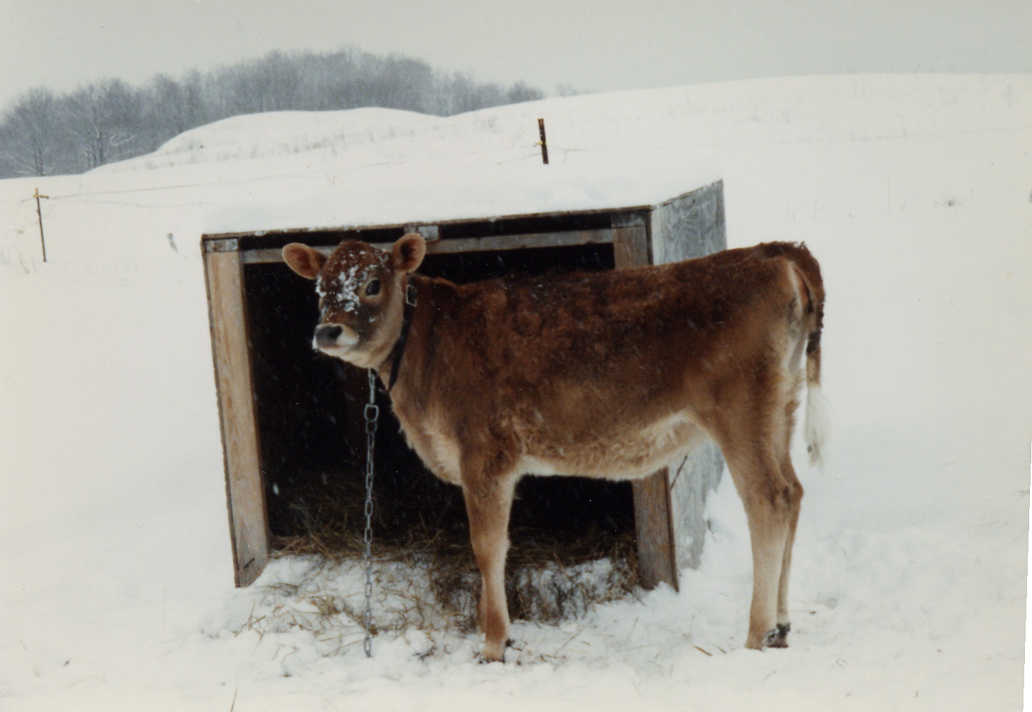 I also can’t help but think back to our winter farm days—Yikes!!!! So many things could freeze and go wrong. But, there were many good memories also. The cows would get outside to investigate the fresh clean snow after a storm. Then at milking time they would settle into their stalls and relax, gratefully chewing the fresh silage and hay. It was also wonderful to see the hutch calves running and kicking through the fresh snow. Some good ideas for batik have come from those images, but………. won’t be completed until next year.