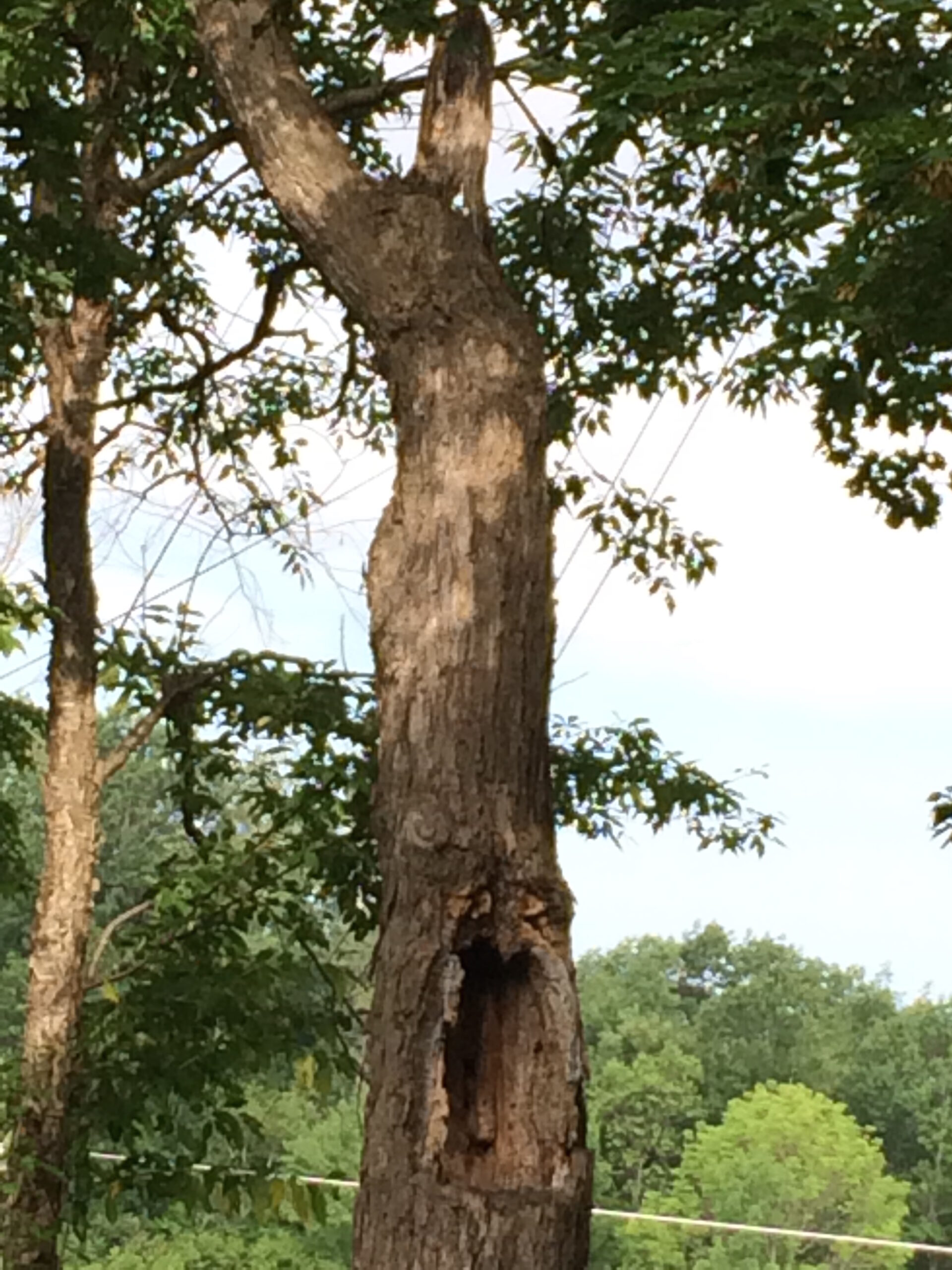 So I would have little sessions of standing, working on the images and realized I was trying to send them a long way away. Maybe not a long way away for a bee, but it was hard to imagine something specific that distance. Then I found a tree right in our front yard which was decaying and had significant rotting that had taken place. I had seen woodpeckers near it, and I thought, boy, that would be a nice place for the bees. So I started imagining that tree and hoping that maybe they would find that to be an attractive home, and they wouldn’t have to move far.