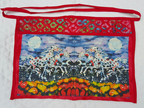 - My batik fabric “Appaloosas in Summer Moon” on an apron by Pat Davis