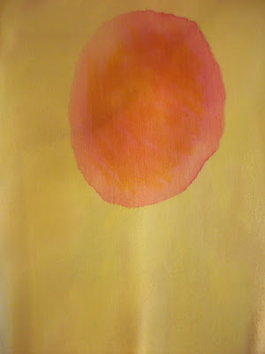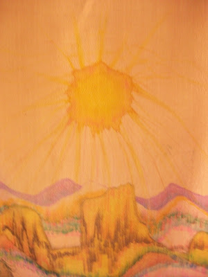 In my studio I find the sun as the subject of my work today: see two examples of silk painting. I think back to summer days when I would hope for some clouds to ease the sun’s glare and can hardly believe I would wish such a thing. At the day’s end, which didn’t take that long to reach, I peak at the sun, bright red until it dips below the mountains and briefly casts a pink glow to the evening sky.