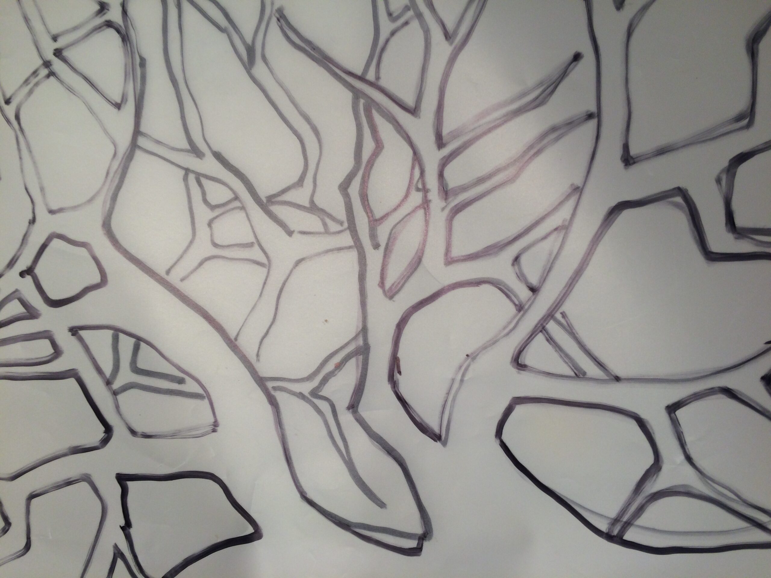 The other type of batik I do can be very detailed and for this type of batik, I do have to make a sketch ahead of time. I will highlight the sketch in a black marker and then I will trace it onto the white cotton. After that, it is most usually by using a brush that I draw the wax into the design. The most critical of times to use this method is when I am doing batik of trees and their branches.