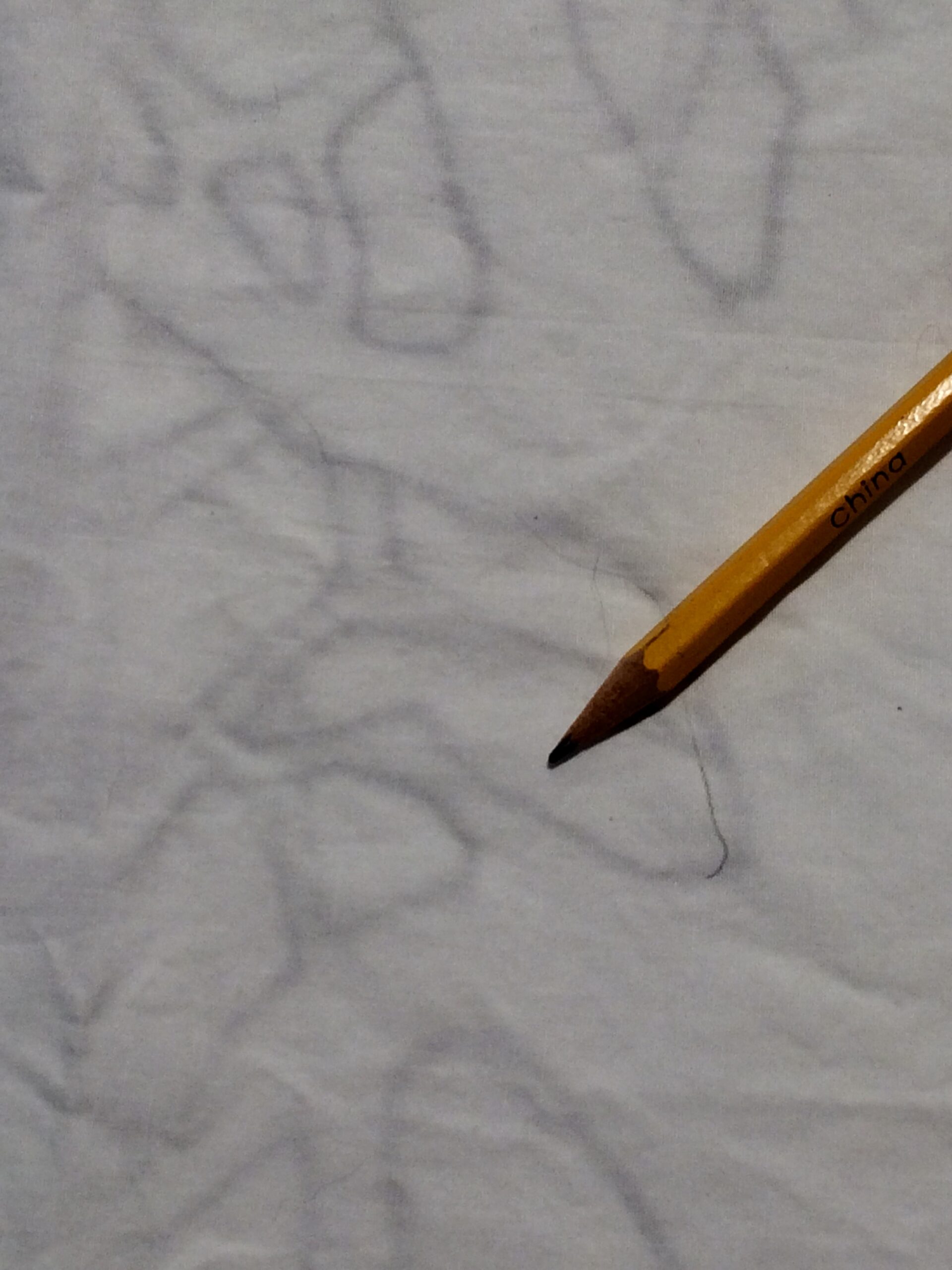 - The fabric resting on the black image with me doing the pencil work to trace it